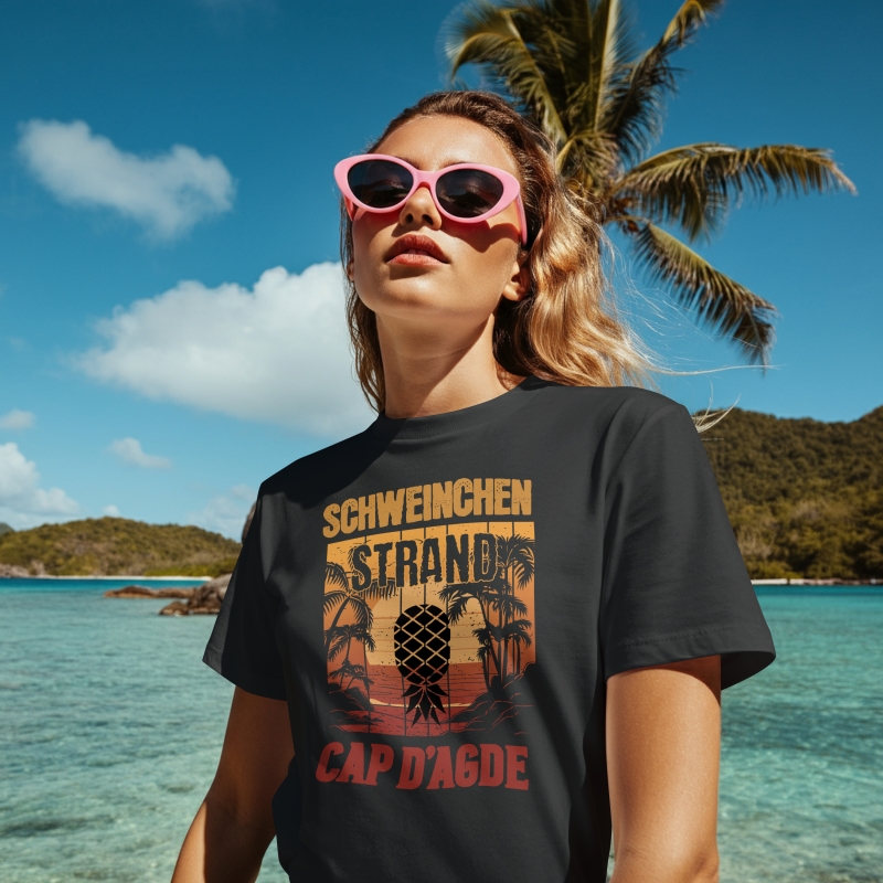 Tauche ein in die Welt des offenen Lifestyles – mit dem provokanten Design „Cap d’Agde – Schweinchenstrand“. Dieses Motiv bringt die erotische Atmosphäre des berühmten Freizonen-Strands direkt auf dein Textil. Ideal für Sommer, Festivals, Fetisch- oder Strandpartys – selbstbewusste Statementmode im BESTENSEN Sinne.
