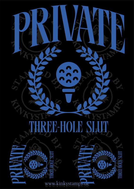 Mit diesem provokanten DTF Bügelmotiv setzt du ein eindeutiges Statement. Der Spruch „PRIVATE THREE-HOLE SLUT“ kombiniert frechen Humor mit einem sportlichen Look: In der Mitte befindet sich ein Golfball auf einem Abschlagspin, eingerahmt von einem edlen Lorbeerkranz – ein Design, das garantiert für Gesprächsstoff sorgt.