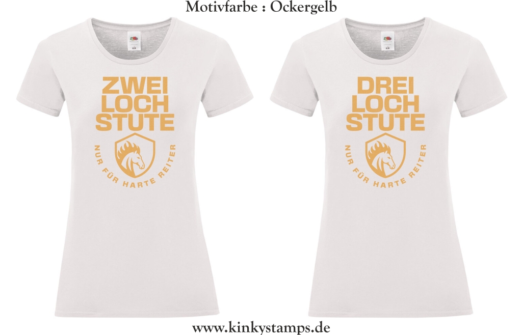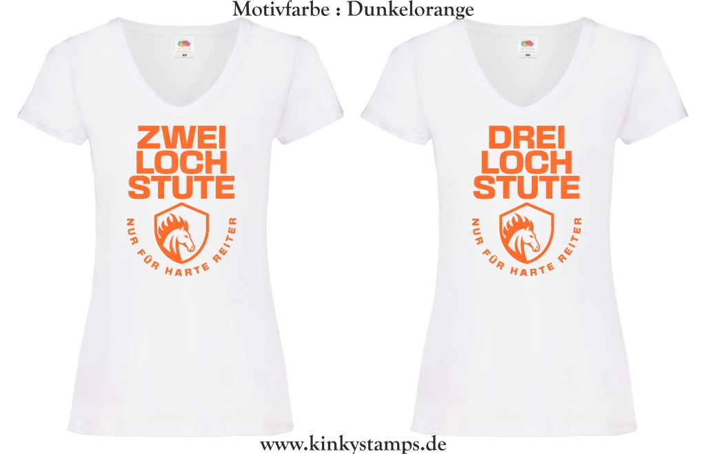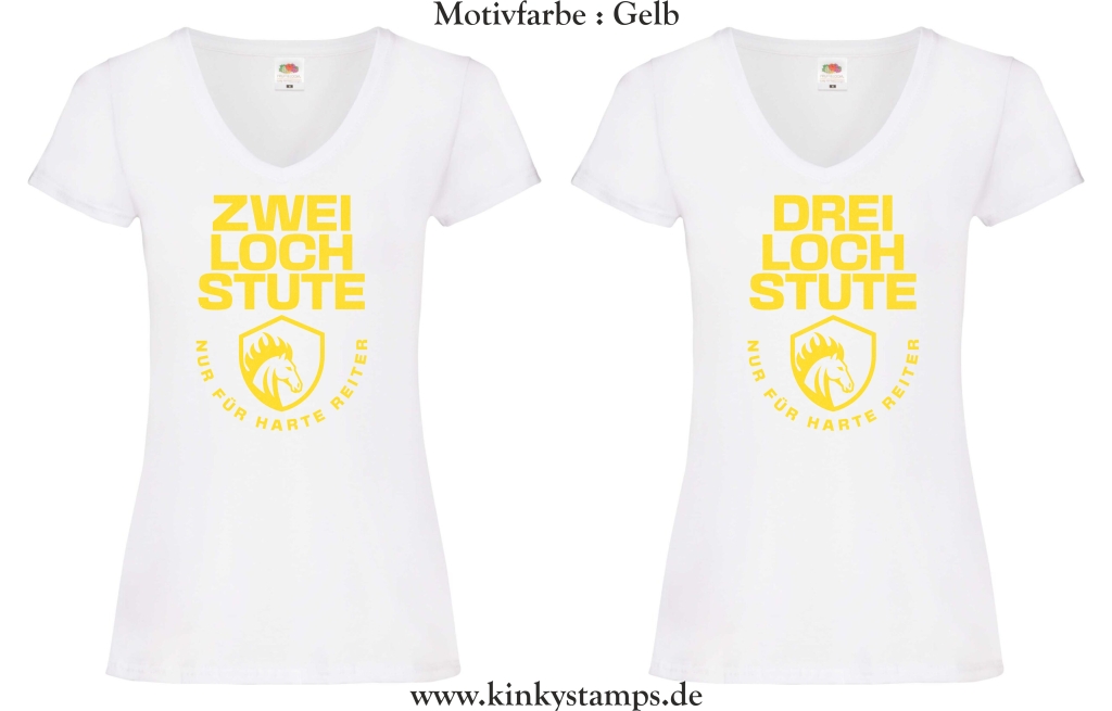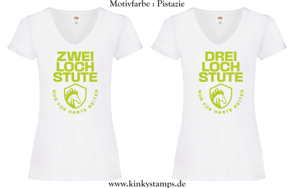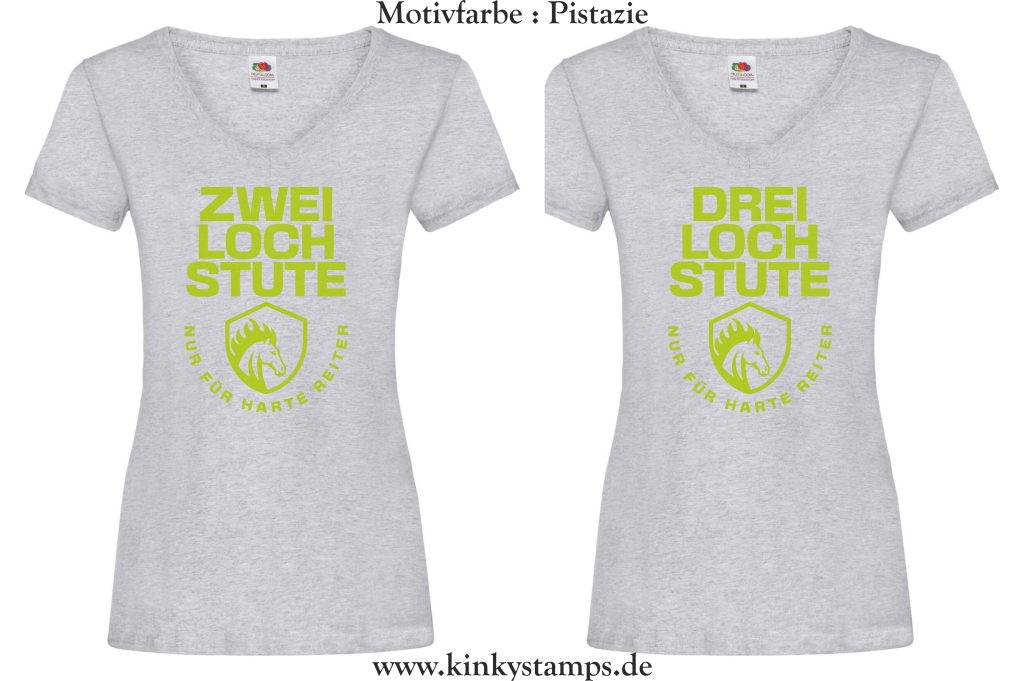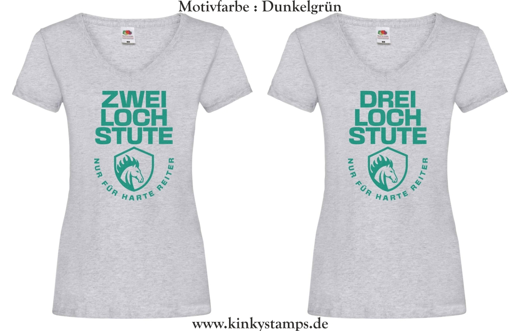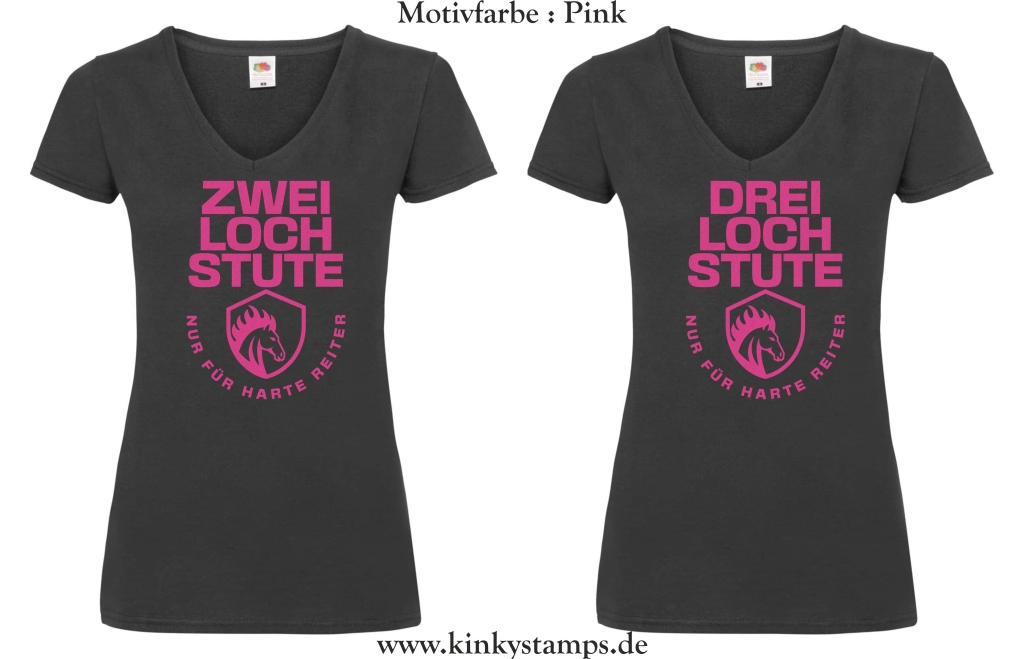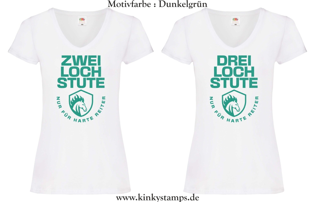 Dieses Damen T-Shirt mit V-Ausschnitt ist gemacht für alle, die ihre kinky Seite mit Stolz zeigen. Mit den provokanten Sprüchen „Zweiloch Stute für harte Reiter“ oder „Dreiloch Stute für harte Reiter“ sendest du eine klare Botschaft – ohne Umwege und garantiert mit Blickfang-Garantie.