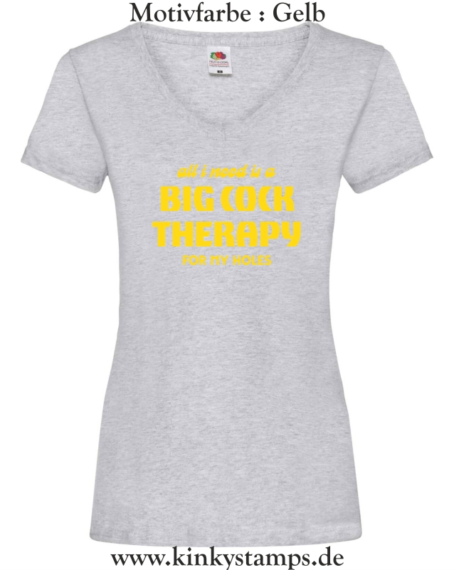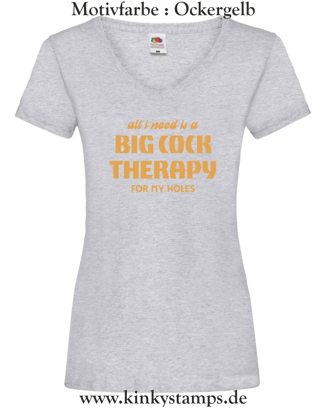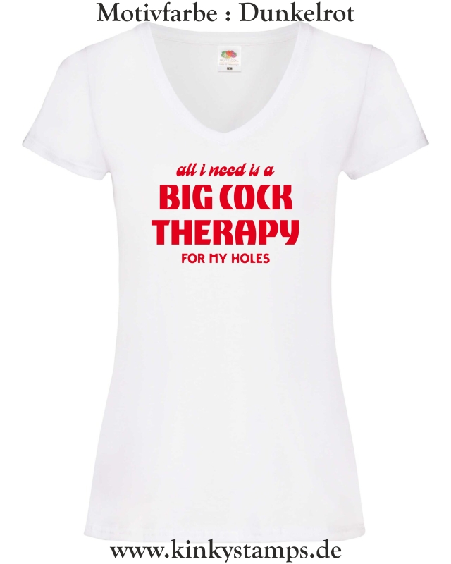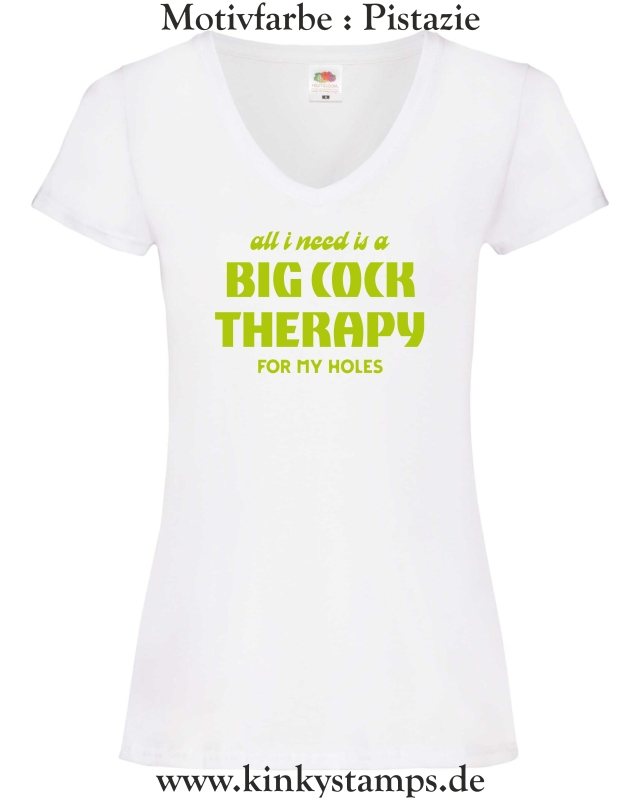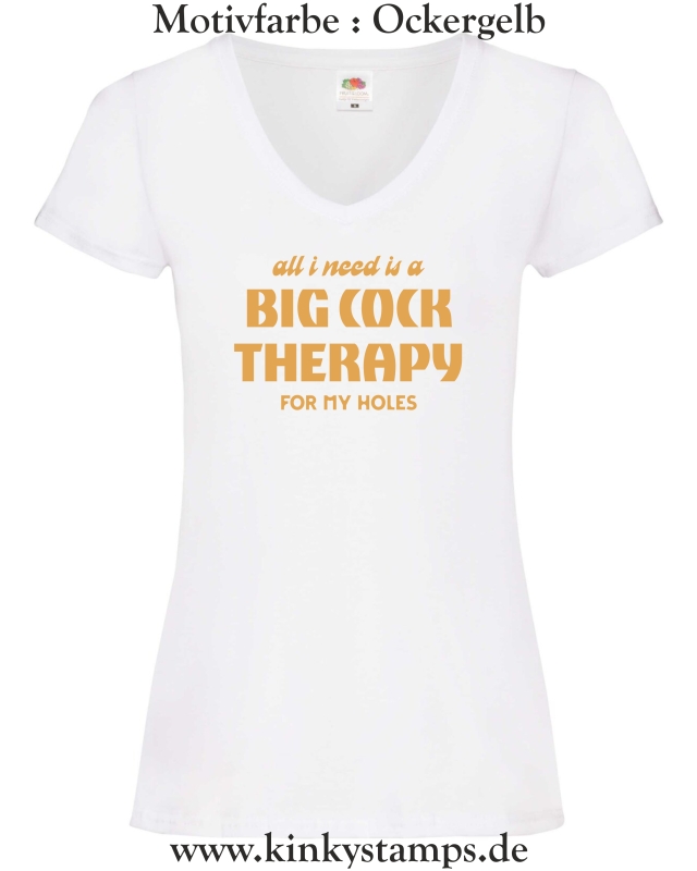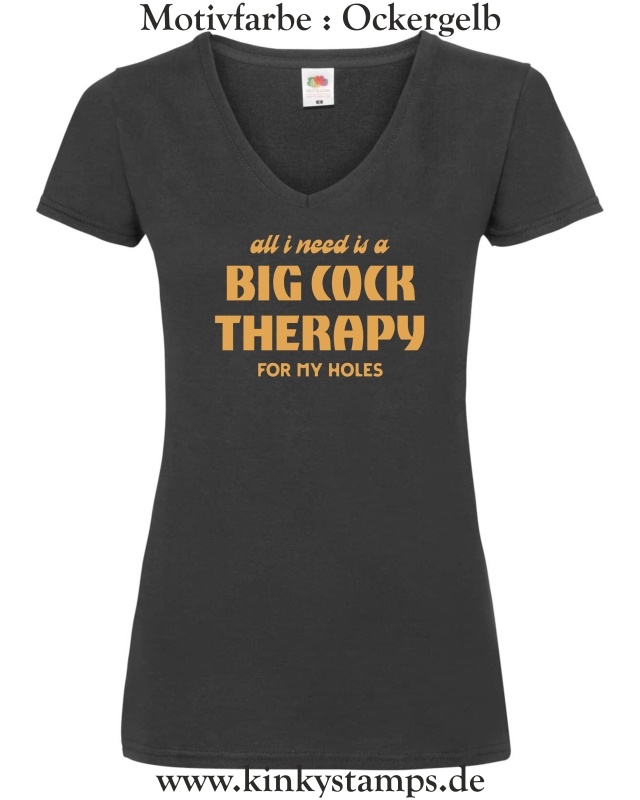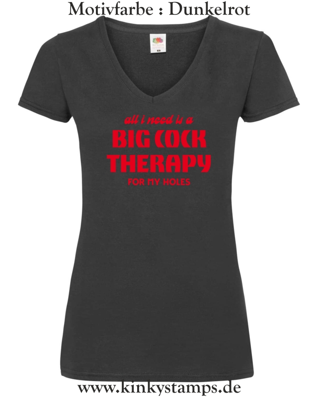 All I need is a big cock therapy for my holes – provokantes Damen-Shirt mit V-Ausschnitt