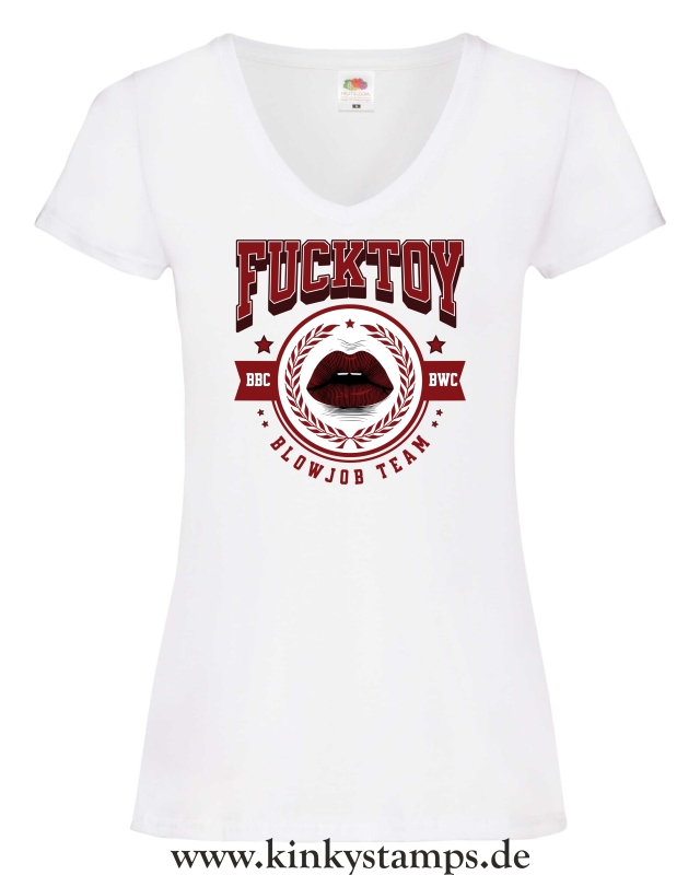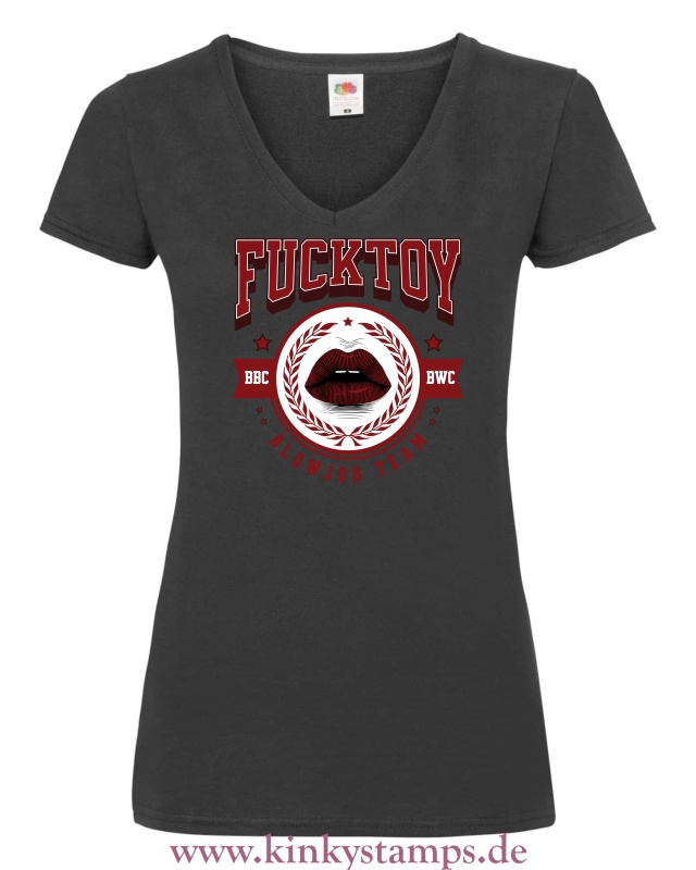 Fucktoy – Team Blowjob: provokantes Damen-Shirt mit V-Ausschnitt