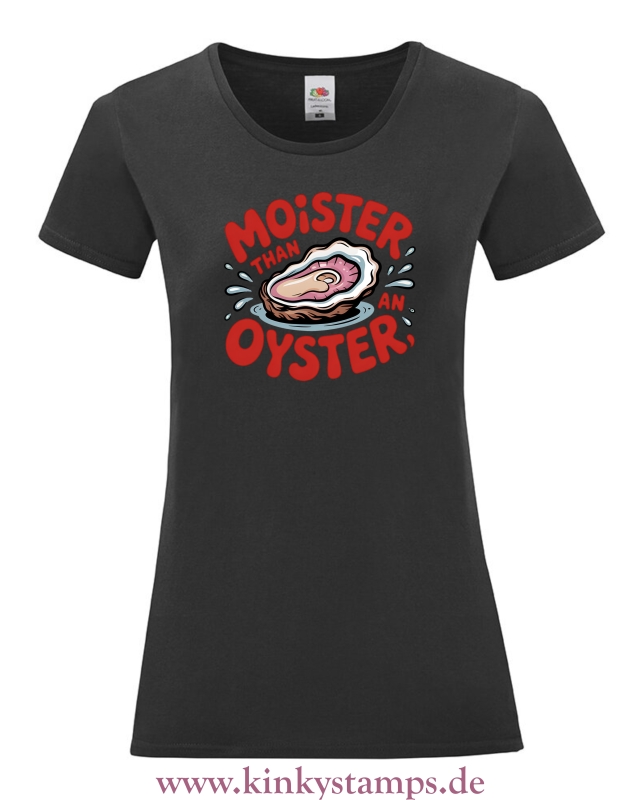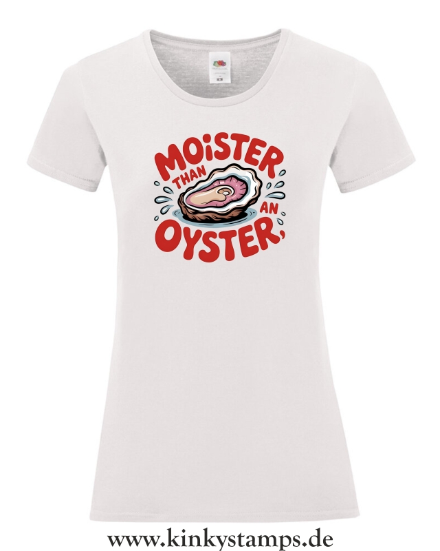 Damen T-Shirt mit Rundhals und Spruch: „Moister than an Oyster“