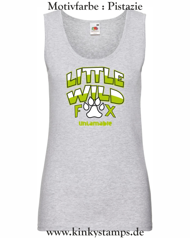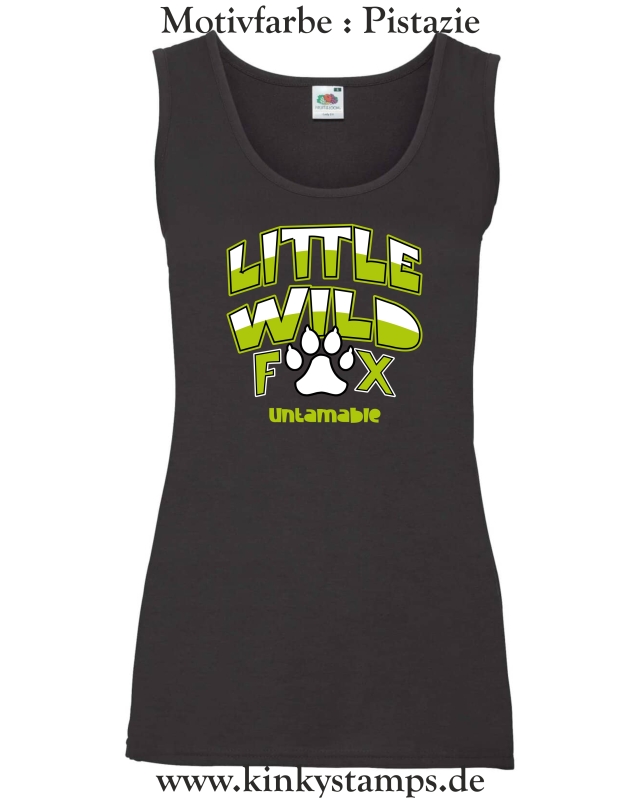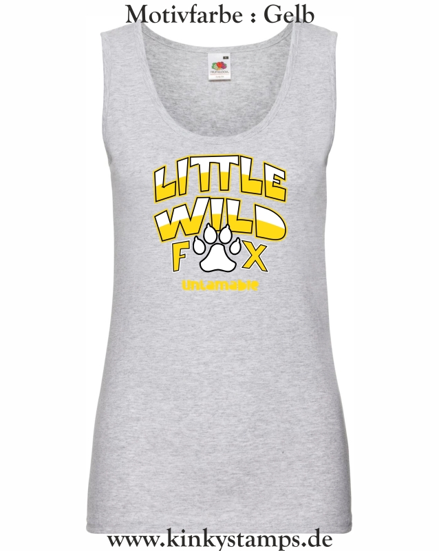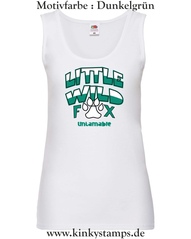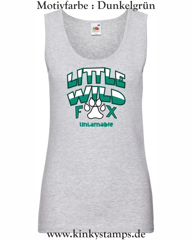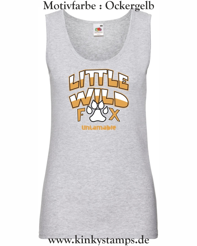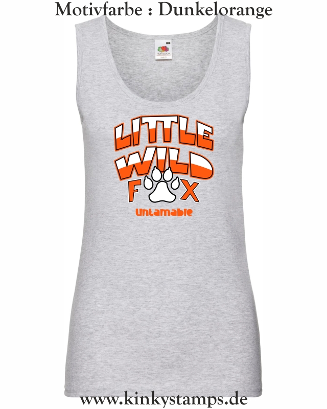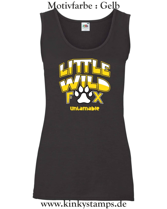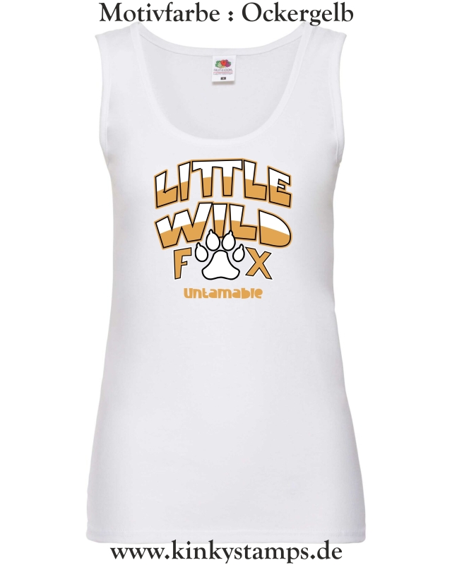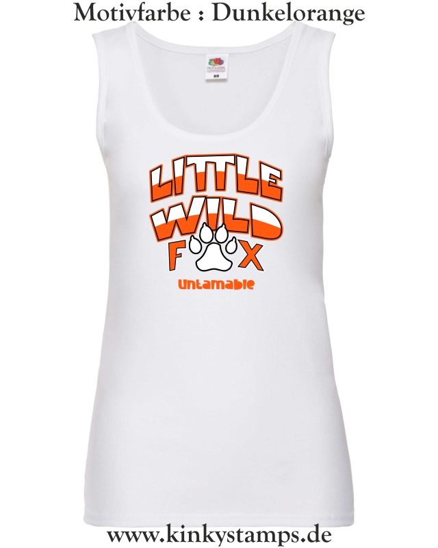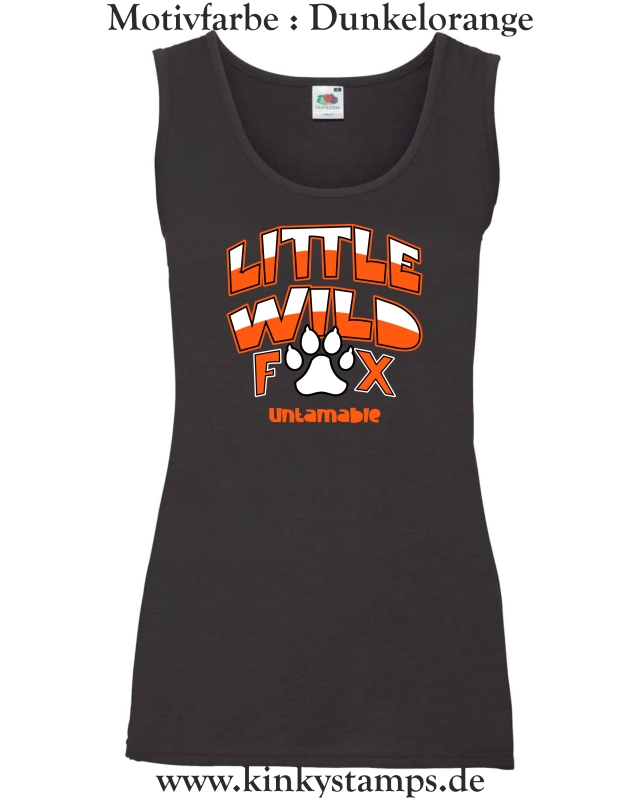 Dieses Damen-Tanktop bringt deine wilde Seite perfekt zur Geltung. Der Spruch „Little wild Fox – untamable“ zeigt eindeutig: Du bist frei, ungezähmt und spielst nach deinen eigenen Regeln. Besonderes Detail: Beim Wort Fox ist das „O“ durch einen Fuchspfoten-Abdruck ersetzt – verspielt, sexy und unverwechselbar.