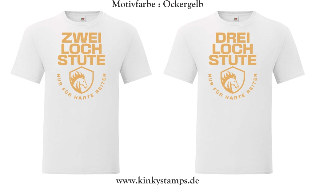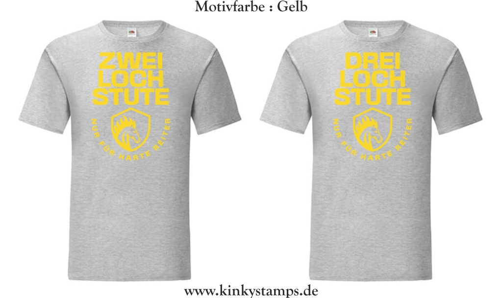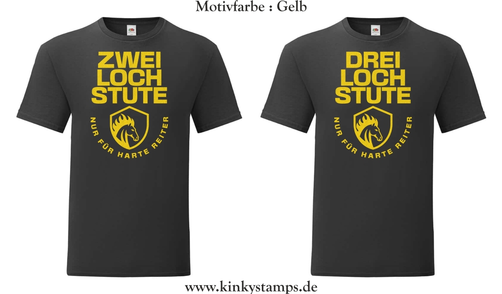 Dieses Kinky Herren T-Shirt ist nichts für Zartbesaitete. Mit den provokanten Sprüchen „Zweiloch Stute für harte Reiter“ oder „Dreiloch Stute für harte Reiter“ setzt du ein eindeutiges Statement in der BDSM- und Fetischszene. Perfekt für alle, die Spaß an klaren Ansagen haben und ihr kinky Mindset stolz nach außen tragen wollen.