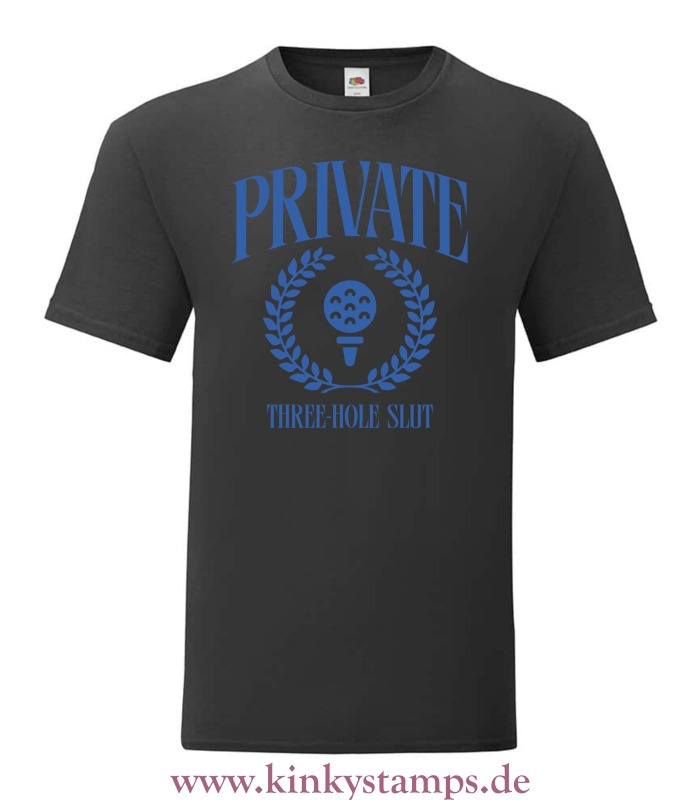 Herren T-Shirt mit Spruch: „PRIVATE THREE-HOLE SLUT“