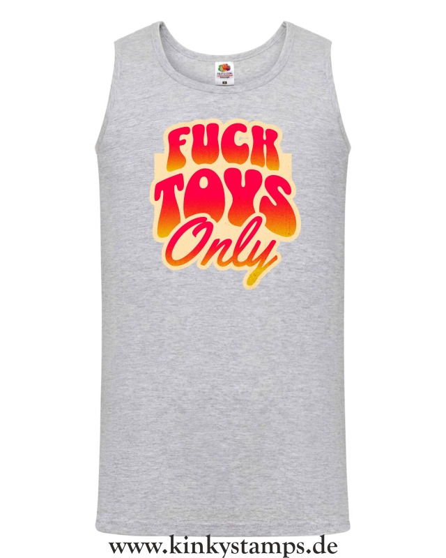 Dieses Herren-Tanktop ist ein eindeutiges Statement für die BDSM- und Fetischszene. Mit dem Spruch „Fucktoys only“ zeigst du ganz ohne Umschweife, worum es geht. Provokant, direkt und garantiert ein Blickfang – egal ob im Swingerclub, auf der Fetischparty oder als heißes Sommer-Piece.