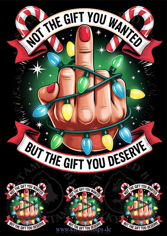 DTF Bügelmotiv „Not the Gift you wanted – But the Gift you Deserve“ – freches Weihnachtsdesign mit Mittelfinger