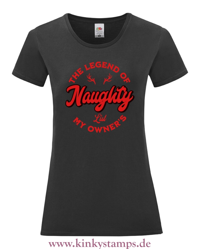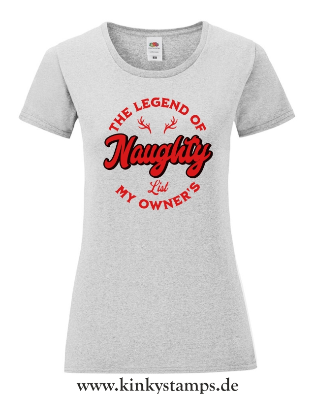 Damen T-Shirt mit Rundhals und Spruch: „The Legend of my Owner's Naughty List“