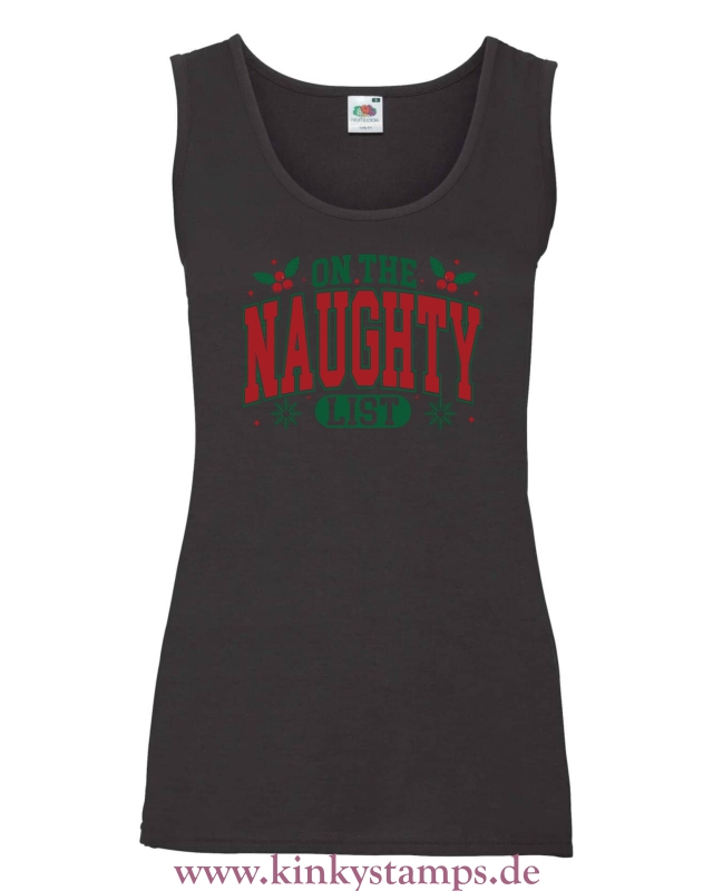 Damen Tanktop mit Spruch: „On the Naughty List“